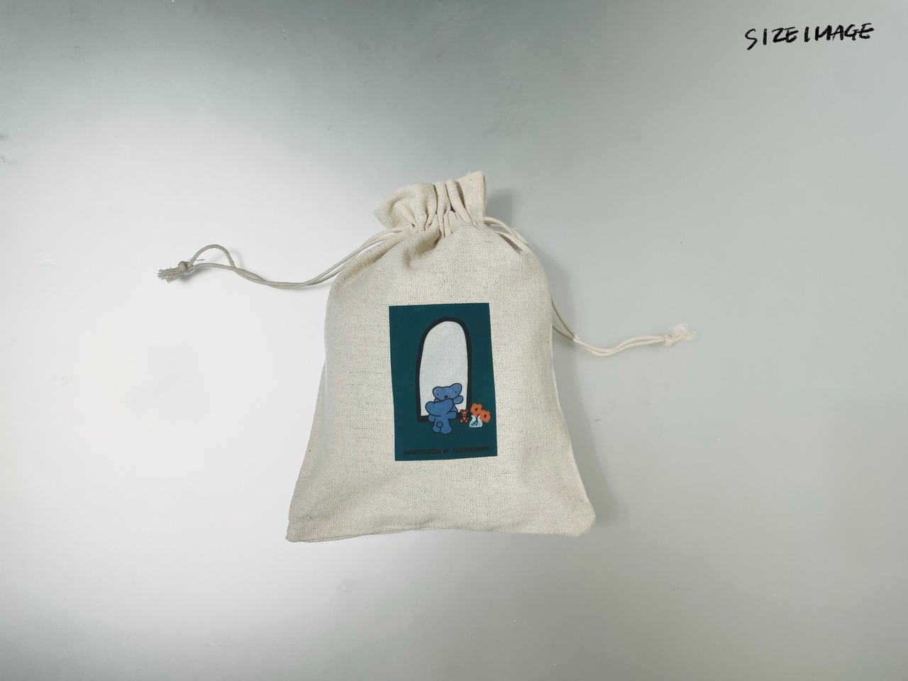 アメリカのスクール文化で、卒業などの節目に寄せ書きして思い出を残す“メモリアルジャケット”から着想を得た、両面手描き巾着です。