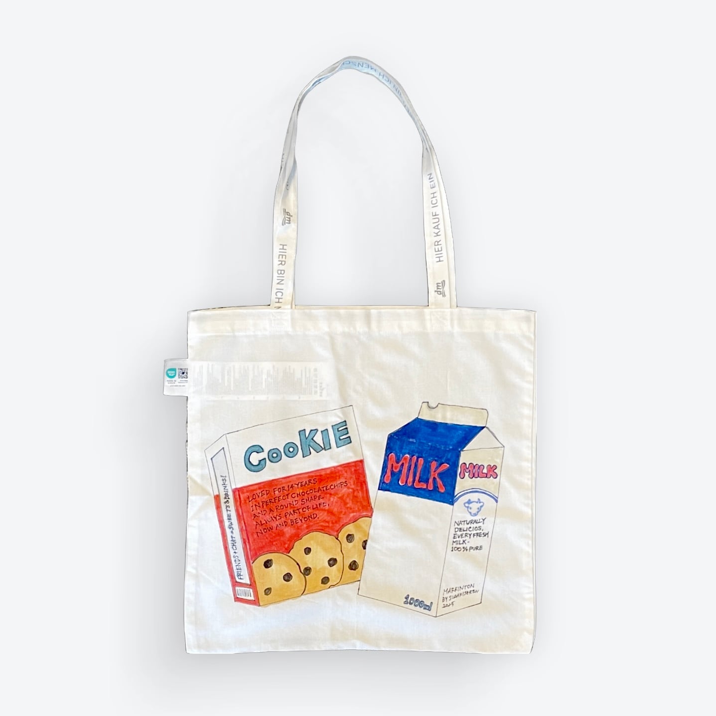 ドイツのドラッグストア〈dm〉のエコバッグを取り寄せ、手描きのイラストを入れました。
